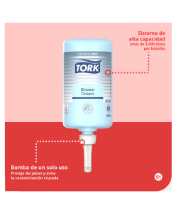 Compatible con los dispensadores de Jabón Líquido Tork® S1, certificados como "Easy to Use" (fáciles de usar), que facilitan el acceso a la higiene para todos los usuarios.